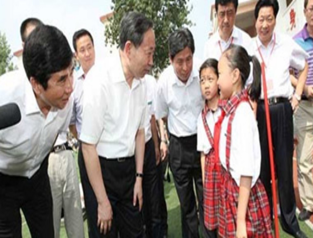 教育部长袁贵仁视察国际田联少儿趣味田径实验学校西安阎良一校