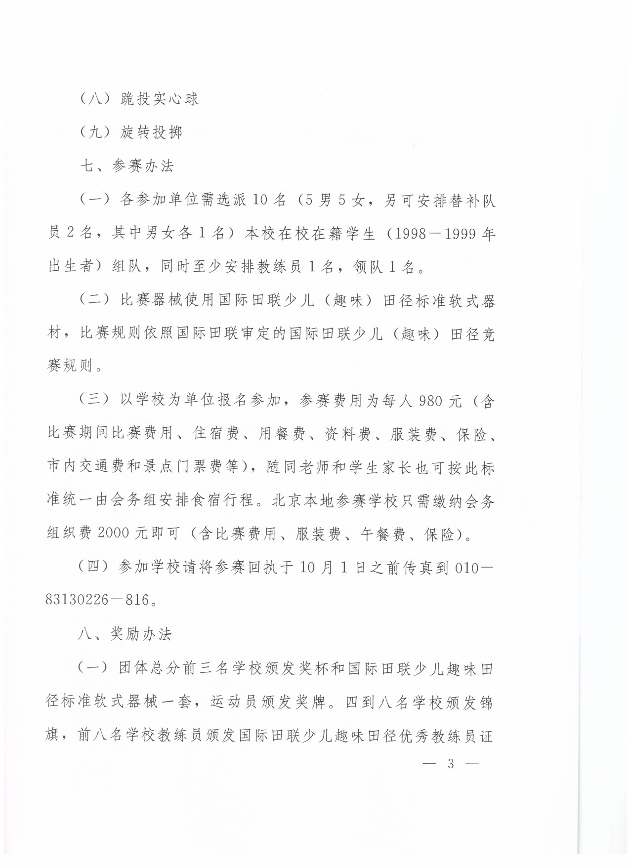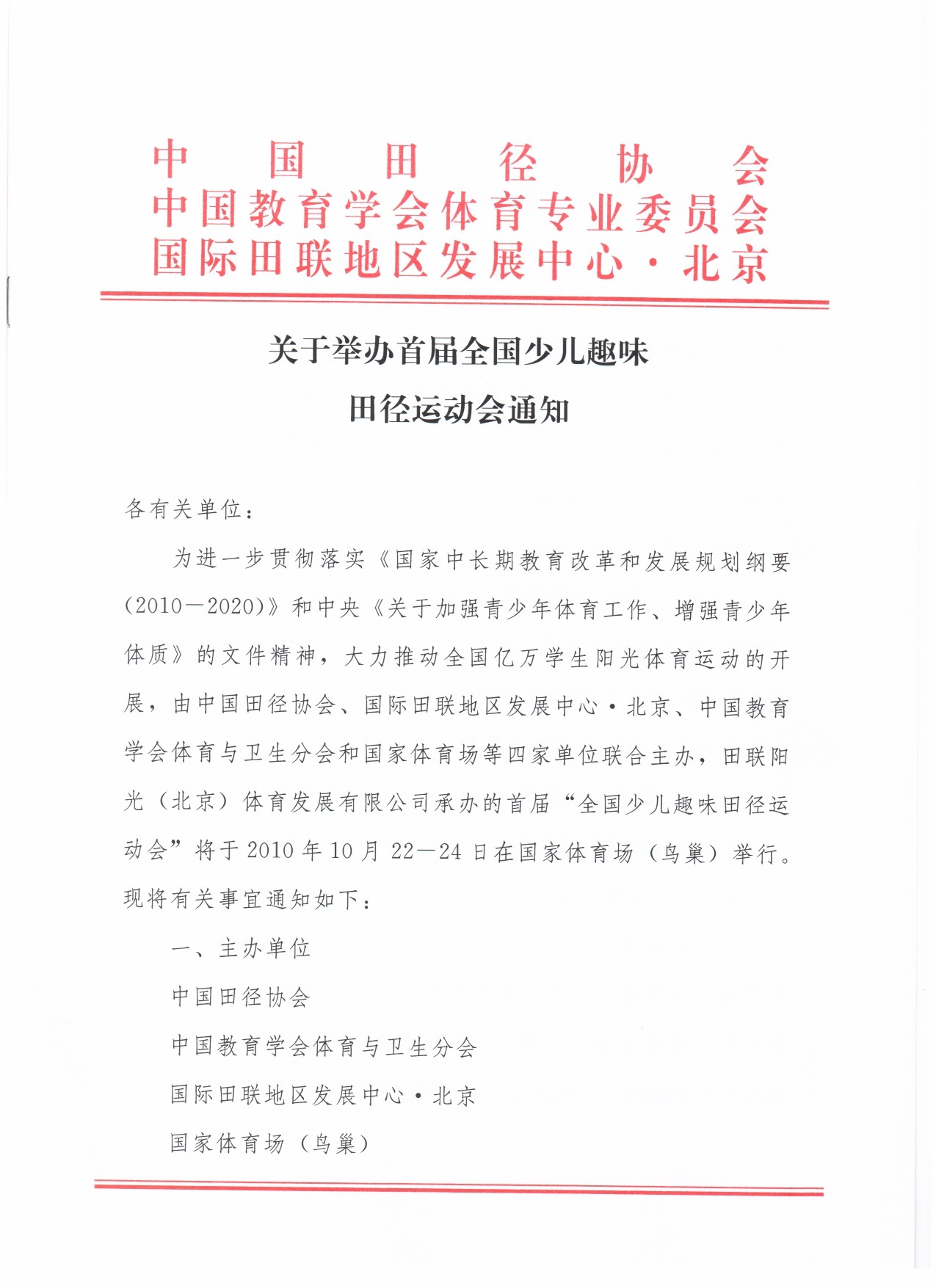 关于“鸟巢杯”首届少儿趣味田径运动会的通知