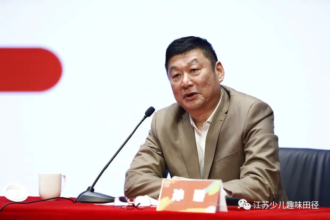 江苏省田径运动协会会长、江苏省体育局社会体育管理中心孙谦主任以《江苏省趣味田径的发展与建设》为主题,并针对趣味田径项目,从国家相关政策、项目体系、课程搭建、师资培养等方面进行了详细的介绍和分享。