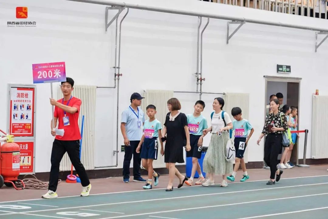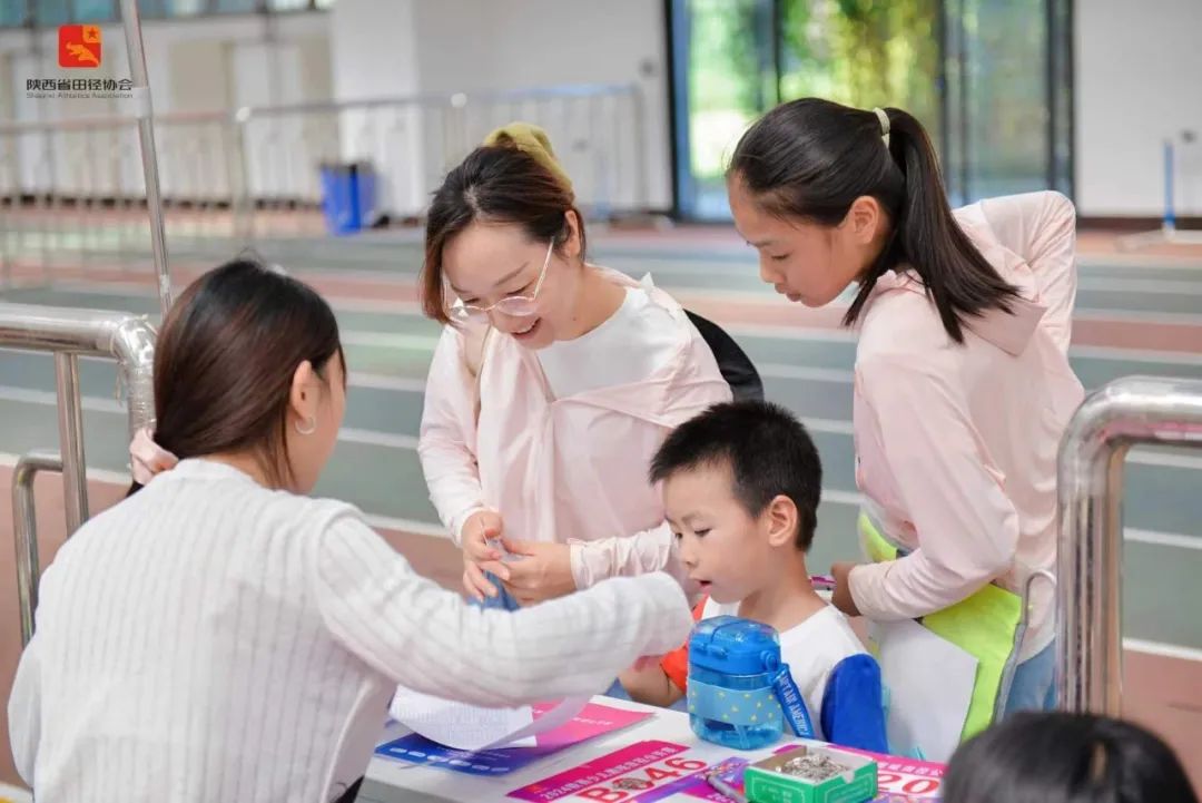 比赛现场热情洋溢,加油声、欢呼声此起彼伏。小选手们活力四射,在家长的鼓励指导下拼尽全力,带着对运动的热爱和对胜利的渴望尽情享受比赛的乐趣。家长们陪伴在孩子身边努力加油呐喊,充满了骄傲和期待。欢声笑语中,参赛的小选手们不断超越自我,展现了拼搏奋进的精神和田径运动的无限魅力。一位家长在采访中表示“比赛过程非常欢乐,看着孩子勇敢面对挑战,赛出了好成绩我也非常惊喜,今后我也会更加重视培养和挖掘体育方面的兴趣爱好,多陪伴孩子参加体育运动。”趣味田径比赛为少年儿童搭建了展示平台,普及了田径知识、激发了运动兴趣,能够根据儿童青少年心理、生理发育等特点,通过改变组织形式,让田径运动变得更具趣味性,更好地帮助少年儿童在体育锻炼中享受乐趣、增强体质、健全人格、磨炼意志。为了让选手和家长有更好的参赛体验,省田径中心精心选调了35名裁判员(其中*********19名)及55名陕西学前师范学院的志愿者,确保比赛公正、规范。为应对高温炎热天气赛场配备了随处可见的冰桶和风扇,全力为赛事安全顺利举办保驾护航。今后,省田径中心将持续深入贯彻落实习近平总书记关于体育工作的重要论述,落实体育总局与教育部《关于深化体教融合 促进青少年健康发展的意见》精神,对标省体育局“六个争做西部示范30项具体行动”持续发力,积极发挥体育的育人功能,进一步推动我省少儿趣味田径的普及和推广,加强体教融合,让田径运动更深入、更多元地融入少年儿童的健康成长,努力在提升青少年健康发展水平上争做西部示范。