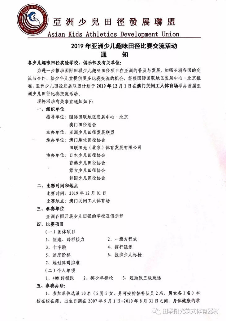 报名||相约澳门 相约亚洲少儿趣味田径比赛