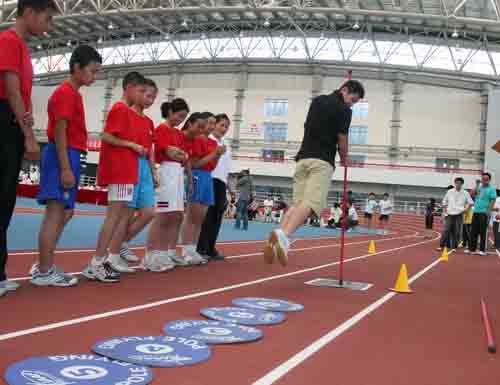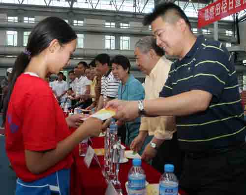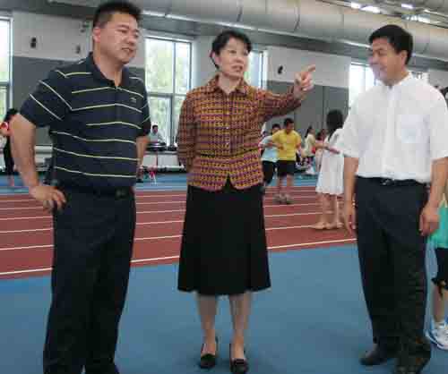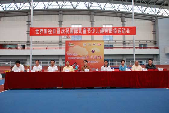 2009年5月30日在北京体育大学国家训练基地综合馆,国家体育总局局长助理晓敏女士;国际田联荣誉副主席楼大鹏先生;国家体育总局田径运动管理中心主任、中国田径协会副主席兼秘书长杜兆才先生;国家体育总局田径运动管理中心副主任、中国田径协会副主席周冰冰女士;中国田径协会青少年部主任黄炜先生;国际田联地区发展中心·北京主任、北京体育大学副校长钟秉枢先生;国际田联地区发展中心·北京副主任孙南先生;中国教育学会体育与卫生分会副秘书长、北京市中小学体育运动协会主席白荣正先生;田联阳光(北京)体育发展有限公司总经理高永强先生等领导和王丽萍、钱红、邢傲伟、莫慧兰、毕文静5位世界冠军共同参加了“世界田径日暨庆祝国际儿童节少儿趣味田径运动会”为参赛的小选手们加油助阵,和孩子们一起体验了少儿趣味田径的乐趣,共同度过了一个美好的六一儿童节。
