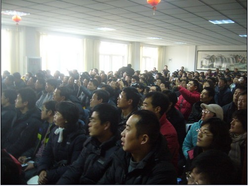 图为:来自山东省各地区300多名教研员和老师们认真旁听