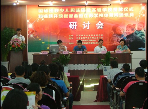 为了推动国际田联少儿趣味田径项目的实验教学和课题研究,2010年6月14日上午, 国际田联少儿趣味田径实验学校授牌仪式和课题开题报告会在江苏省南通师范第二附属小学举行,会议由江苏省教研室孟文砚同志主持。