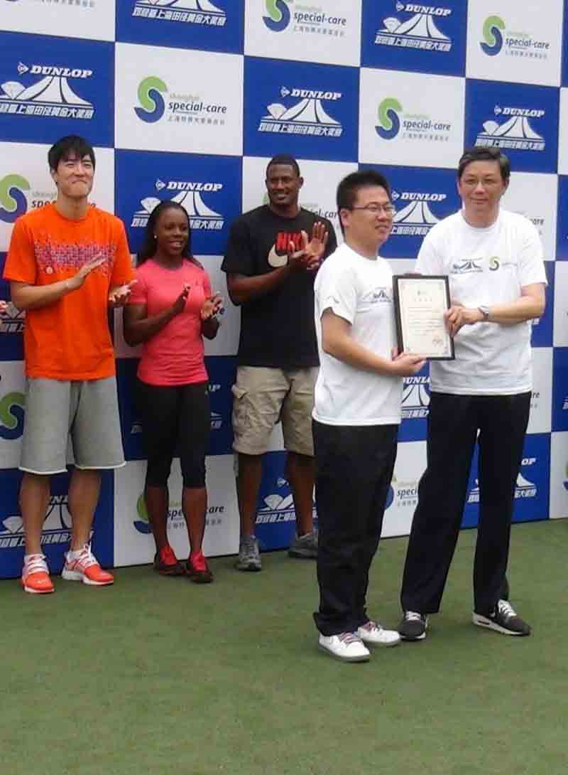 活动最后,上海特奥会主席、上海特殊关爱基金会理事长施德容先生向田联阳光(北京)体育发展有限公司高永强总经理颁发了荣誉证书,以感谢其对特奥运动及特殊儿童公益活动的支持。