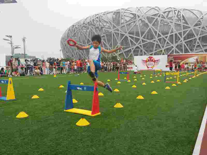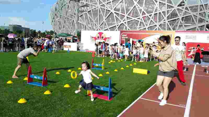 8月27-30日,北京世锦赛进入了最为激烈比拼的阶段,鸟巢现场氛围紧张而凝重。而在紧挨鸟巢的奥林匹克公园景观大道少儿趣味田径展示体验区则正在上演着一场别开生面的,充满快乐和阳光的孩子们的“世锦赛”。