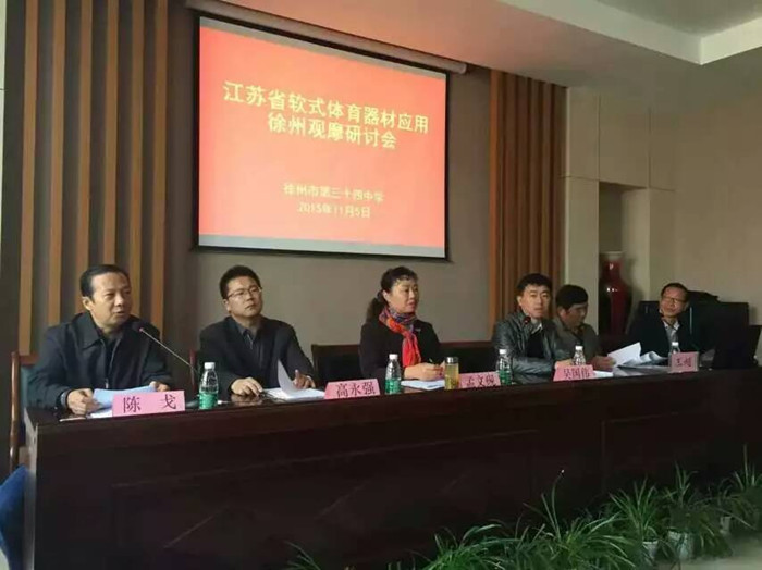 2015年11月5日,江苏省软式体育器材应用徐州观摩研讨会在徐州市第三十四中学附属小学成功举办。江苏省教育装备中心、江苏省教研室、少儿田径项目办的领导和徐州各级装备站、教研室人员共计100多人参加了此次会议,取得了良好的效果。通过这次教研活动,将极大加强少儿田径在中小学体育教育中的应用。