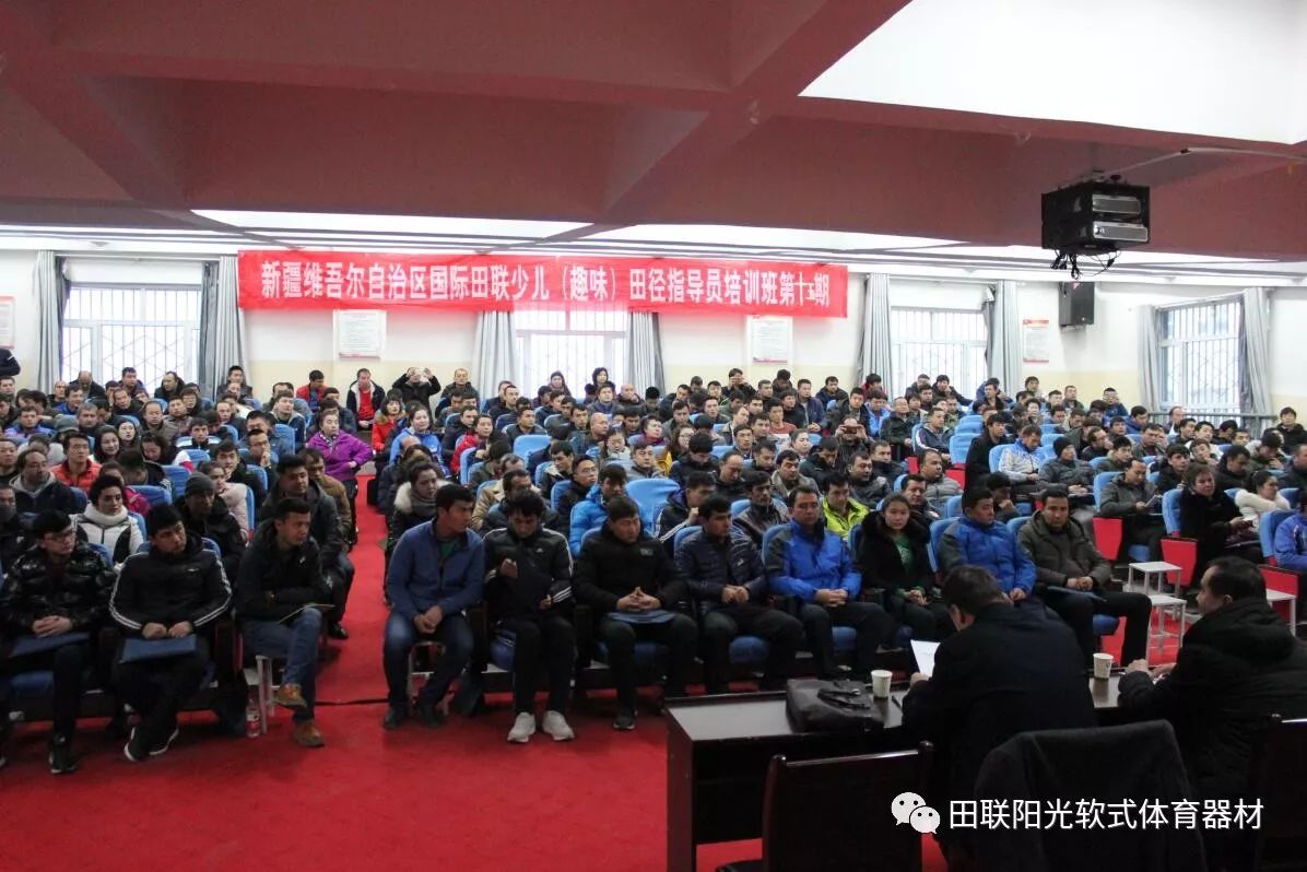 田联阳光喀什站第十五期培训出席人员:新疆维吾尔自治区教育条件装备中心艾尔肯·克热木主持开班仪式,培训由国际田联讲师、乌鲁木齐59小学的老师许萍主讲。