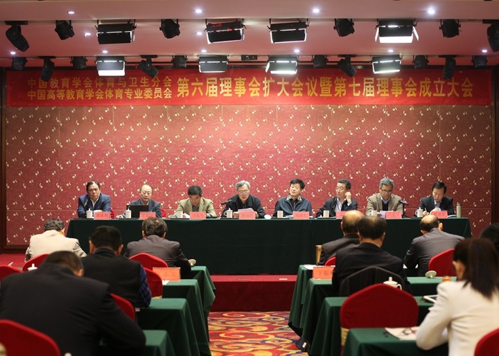 “中国教育学会体育与卫生分会、中国高等教育学会体育专业委员会第六届理事会扩大会议暨第七届理事会成立大会”于2014年10月31日在信阳师范学院召开,来自全国各地的学会理事100余人参加了换届大会。此次会议上对第六届理事会工作进行了总结,同时选举产生出新一届理事会成员。教育部副总督学杨贵仁同志当选为新一届理事会理事长。李鸿江、毛振明、耿培新、马军担任常务副理事长,马瑞升、王家红、姚家新、张瑞林、王凯珍、吴健、季浏任副理事长,耿培新担任秘书长,于振峰、王龙龙、殷恒婵、陈雁飞、白荣正、叶辉、马英华任副秘书长。