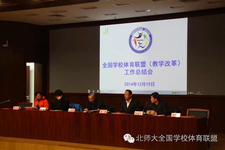 2014年12月19日上午,全国学校体育联盟(教学改革)年终总结会在北京师范大学京师学堂京师厅召开。原教育部体卫艺司司长、全国学校体育联盟顾问宋尽贤、教育部体卫艺司处长王龙,中国教育科学研究院体育卫生与艺术研究中心主任吴键,国家体育总局科研所青少年体育研究与发展中心主任郭建军,中国基础教育质量监测协同创新中心体育学科负责人李佑发,全国学校体育联盟主席毛振明、秘书长唐东辉列席了会议。会议由吴键和北京师范大学体育与运动学院教师侯莉娟主持。