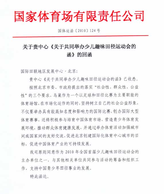 鸟巢杯2010全国少儿趣味田径运动会将于2010年10月22—24日在北京国家体育场(鸟巢)举行,为了确保比赛顺利进行,现作补充通知如下: