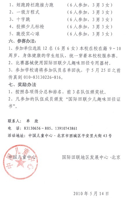 关于庆“六一”“低碳生活 快乐成长”少儿趣味田径运动会的通知