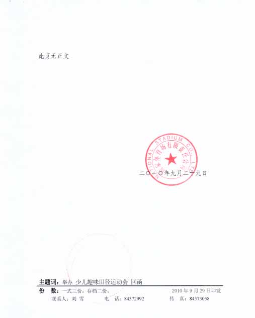 《关于共同举办少儿趣味田径运动会的函》的回函